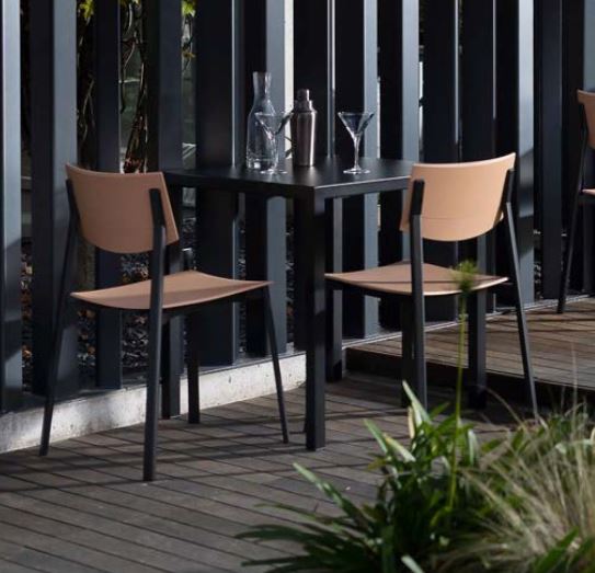 SEDIA IN ALLUMINIO ESTRUSO CON GIUNTI IN PRESSOFUSIONE E SCHIENALE IN TECNOPOLIMERO