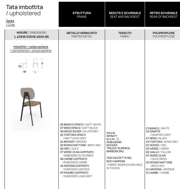 SEDUTA E SCHIENALE RIVESTITE IN TESSUTO: GIULIA, INFINITY, MAM, NOBILBOND, NOCERA, TRILOGY SUPERGA, BARBONCINO