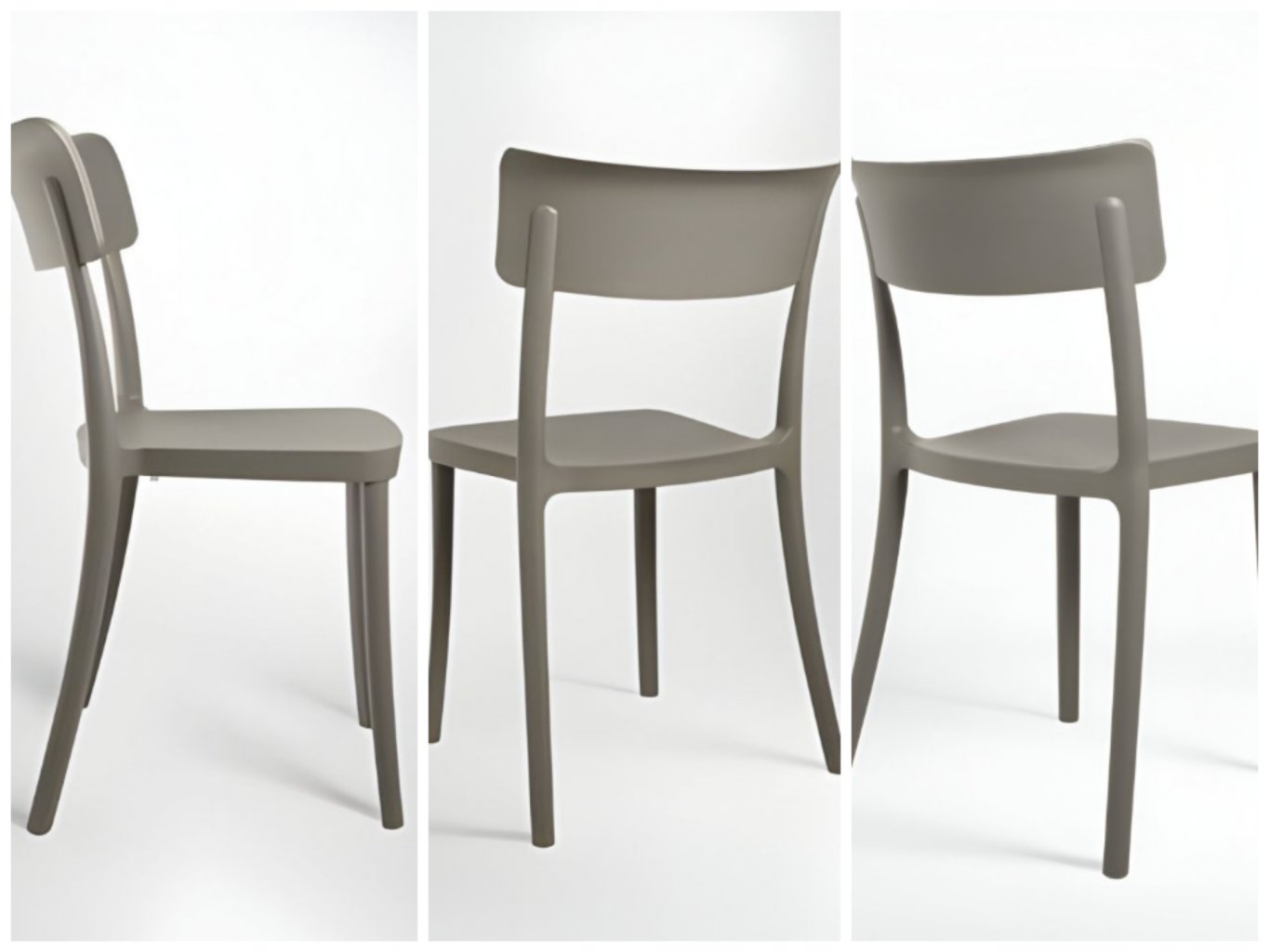 Una seduta monoblocco in polipropilene , realizzata in un unico stampo con polipropilene di alta qualità, resistente a urti, graffi e agenti atmosferici, dotata di superficie soft-touch antigraffio ed elegante, è impilabile fino a 40 pezzi, ideale per contesti domestici, professionali ed eventi.