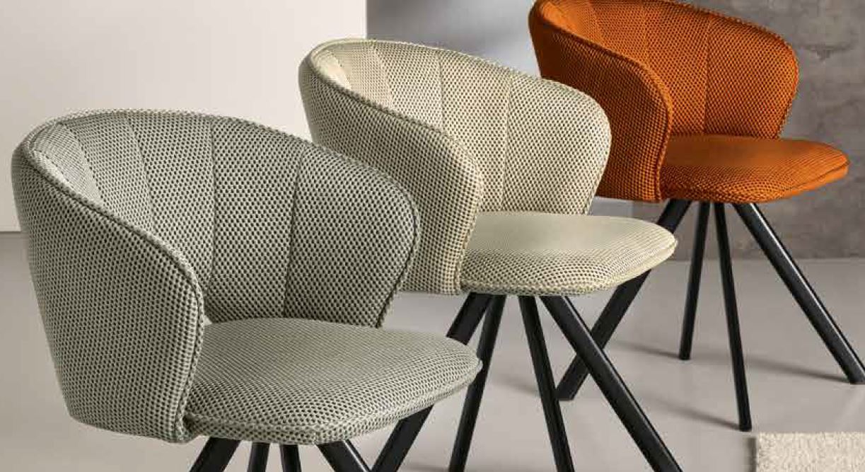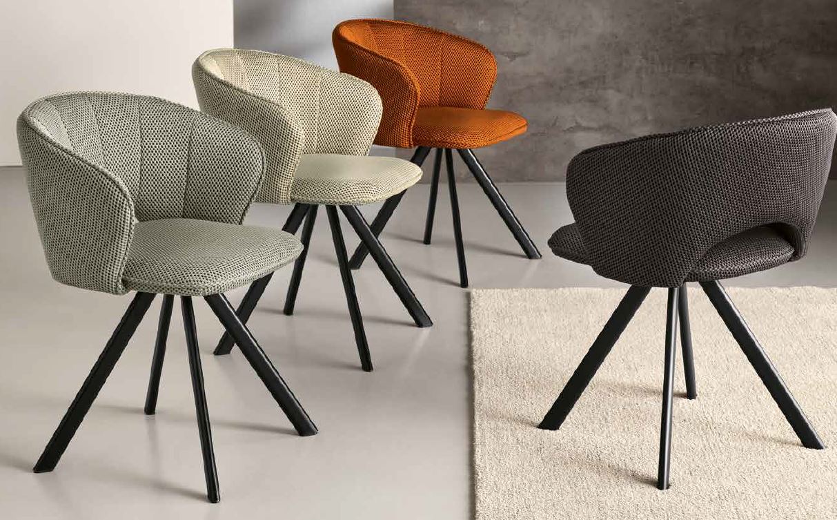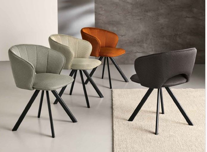 SEDIA IMBOTTITA IN TESSUTO CON STRUTTURA IN METALLO VERNICIATO
