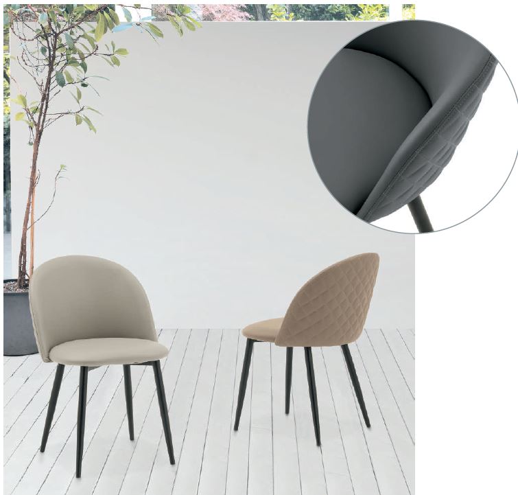 SEDIA CON STRUTTURA IN METALLO VERNICIATO E SEDUTA IMBOTTITA E RIVESTITA IN MORBIDO TESSUTO TECNO-TOUCH
