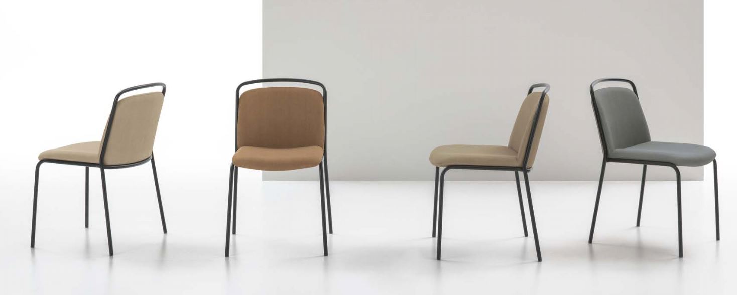 Sedia con struttura in metallo verniciato e seduta e schienale imbottiti e rivestiti in Clean-Touch.