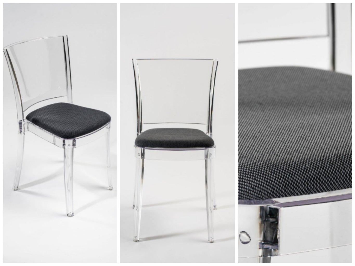 SET 4 SEDIE POLICARBONATO TRASPARENTE CON CUSCINO TREVIRA KAT GRIGIO ARDEISA BICOLOR
