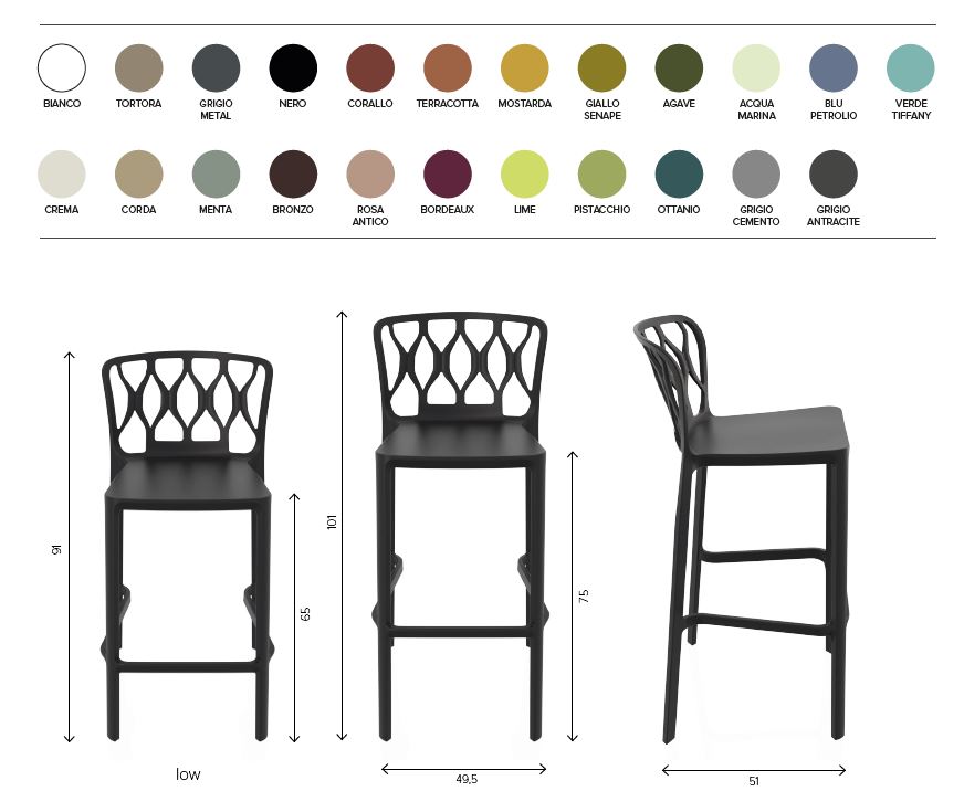 SET 4 SGABELLO INTERNO-ESTERNO MO-VISG, NUMEROSI COLORI