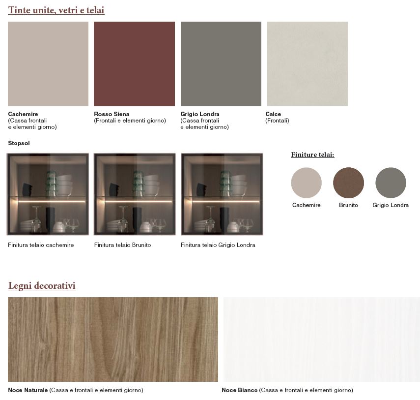 FRONTALI=ROSSO SIENA, NOCE BIANCO, NOCE NATURALE, CACHEMIRE, GRIGIO LONDRA, CALCE