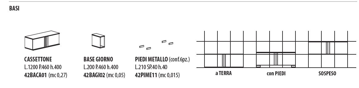 N.2 BASI CASSETTONE CM.120 PROF.46 ALTEZZA 40 CON PIEDI METALLO CM.21X4X4