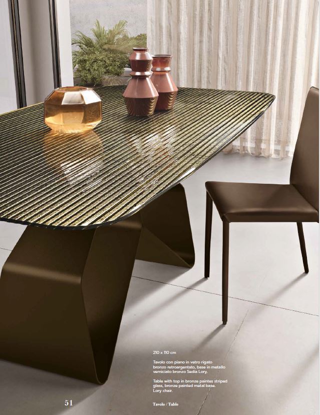 TAVOLO 110X210 CAPODARTE SWING BRONZO-VETRO RIGATO BRONZO