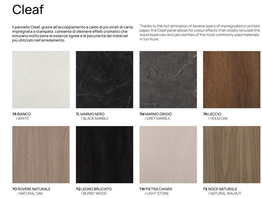 PIANO E ALLUNGA IN LAMINATO CLEAF: BIANCO, MARMO NERO, MARMO GRIGIO, LECCIO, ROVERE NATURALE, LEGNO BRUCIATO, PIETRA CHIARA, NOCE NATURALE, BASALTO, ARDESIA, NEBBIA, SABBIA, MARMO GOLD, SETA