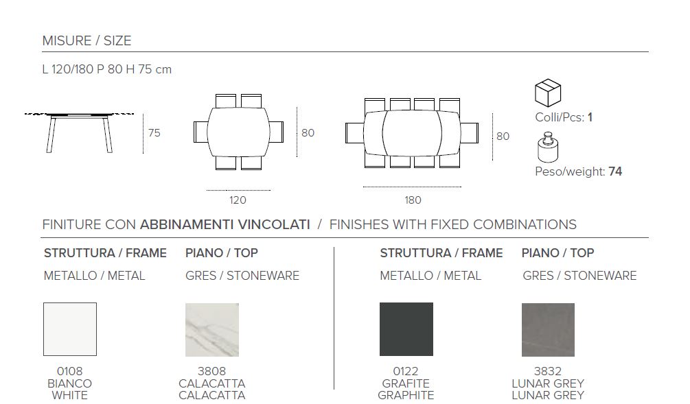 TAVOLO 80X120 ALL.180 TARGET POINT ABISSO CALACATTA O LUNAR GREY