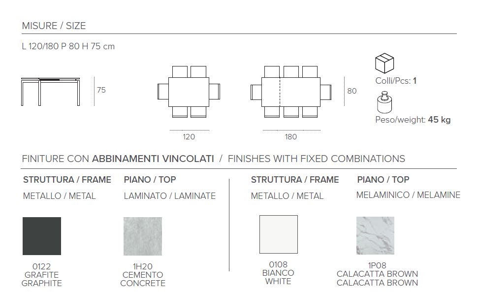 TAVOLO 80X120 ALL.180 TARGET POINT PERIGEO CEMENTO O CALACATTA BROWN