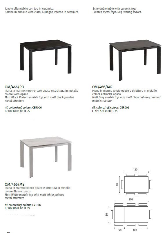 TAVOLO 80X120 ALLUNG.170 FRAME OM466PO