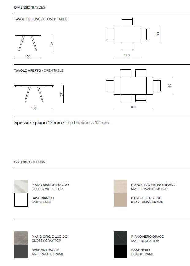 TAVOLO 80X120 ALLUNG.180 IKONE ORESTE MARMO GRIGIO LUCIDO