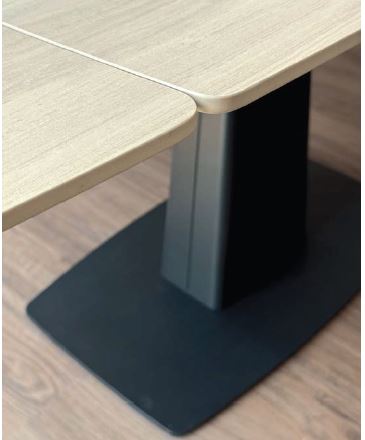 sore, che conferisce al tavolo grande solidità ed è verniciato nero sablé con polveri epossidiche. Il top a botte è realizzato
