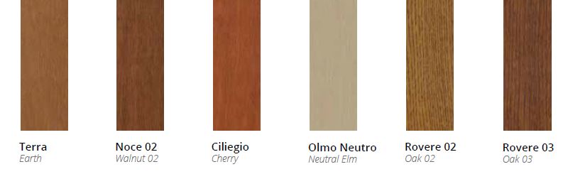 FINITURE: TERRA, NOCE 02, CILIEGIO, OLMO NEUTRO, ROVERE 02, ROVERE 03