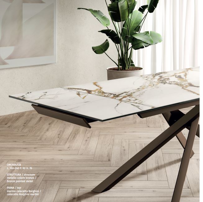 TAVOLO 90X160 ALL.240 BRONZO-VETROCERAMICA CALACATTA BORGHINI