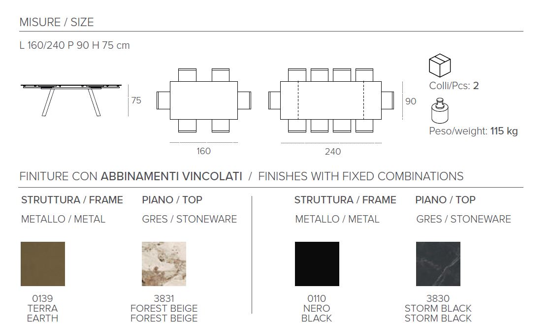 TAVOLO 90X160 ALL.240 TARGET POINT ATLANTIDE FOREST BEIGE O STORM BLACK
