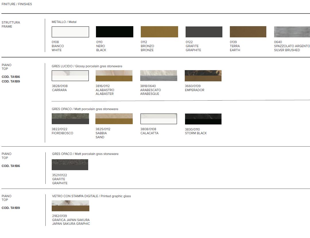 STRUTTURA METALLO COLORI: BIANCO, BRONZO, GRAFITE, TERRA, NERO E CON MAGGIORAZIONE SU RICHIESTA ARGENTO SPAZZOLATO