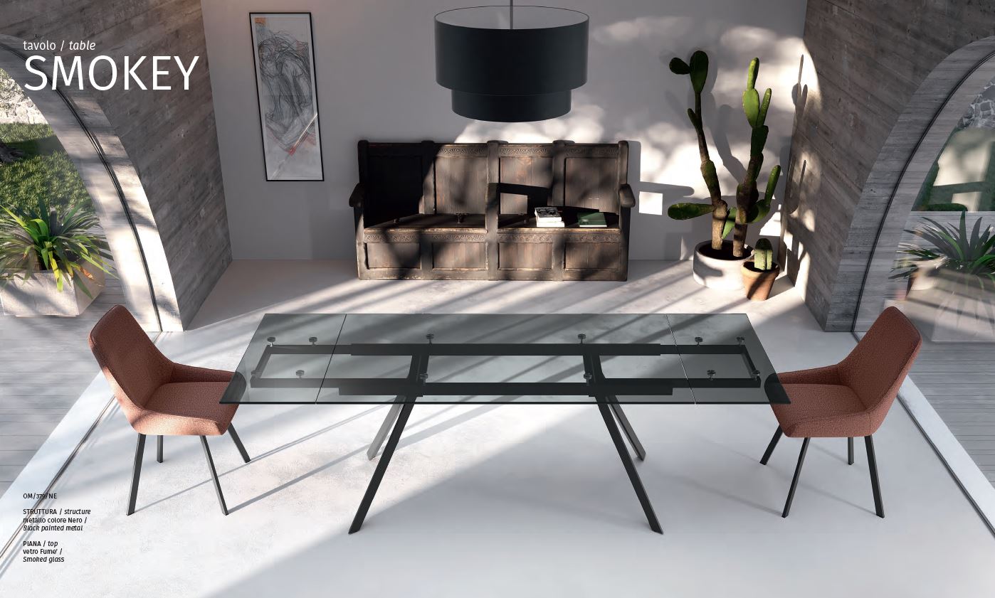 TAVOLO 90X160 ALLUNG. 240 VETRO FUME'