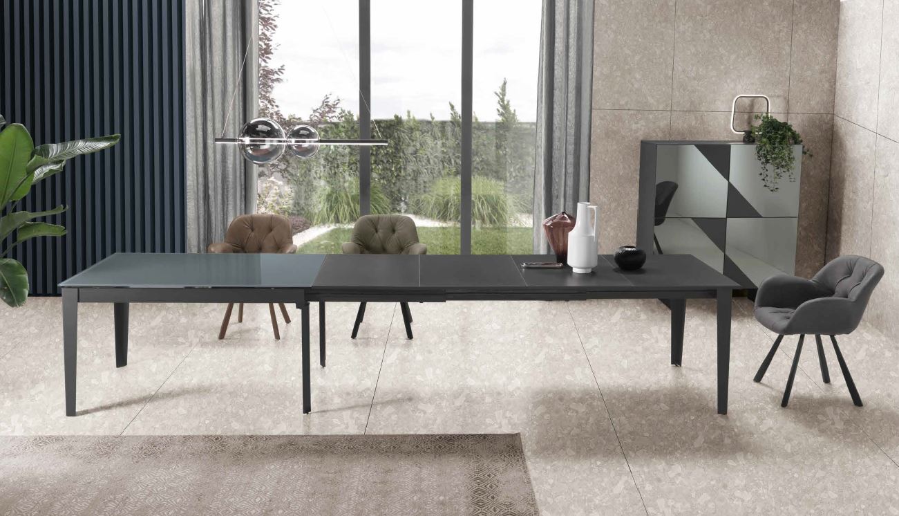 TAVOLO 90X160 ALLUNG.260 CAPODARTE OMERO VETRO ANTRACITE