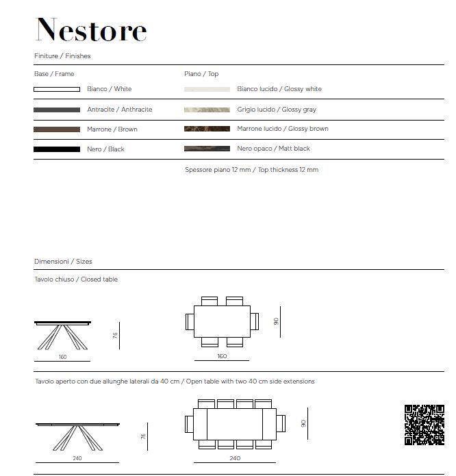 TAVOLO 90X160 ALLUNGABILE 240 CAPODARTE NESTORE MARMO GRIGIO LUCIDO
