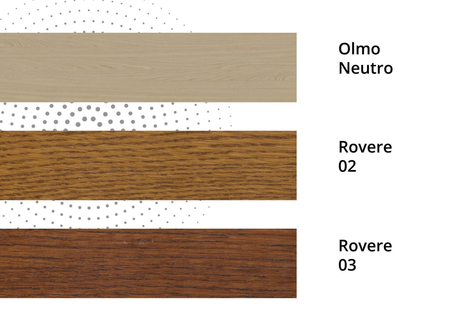 FINITURE: TERRA, NOCE 02, CILIEGIO, OLMO NEUTRO, ROVERE 02, ROVERE 03, ROVERE NATURALE, ROVERE SIGARO, ROVERE GRIGIO, ROVERE WENGHE'