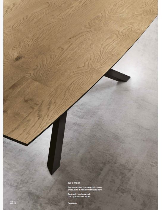 spazio. Il piano in rovere impiallacciato, ampio e materico, è disponibile in diverse finitur per adattarsi a ogni contesto domestico. Disponibile in due misure per rispondere a esigenze di spazio diverse, è proposto sia in versione fissa ideale per chi cerca stabilità e una presenza ben definita nella zona pranzo, sia in versione allungabile, perfetta per accogliere ospiti in più con naturalezza.Completano la proposta le