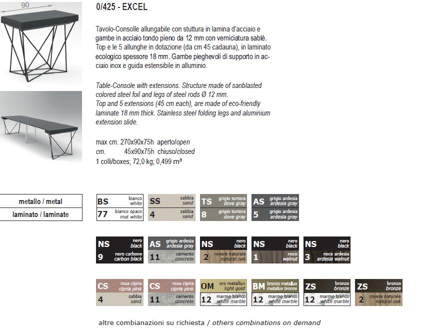 TAVOLO CONSOLLE PEZZANI EXCEL FOLDING MISURE E COLORI VARI