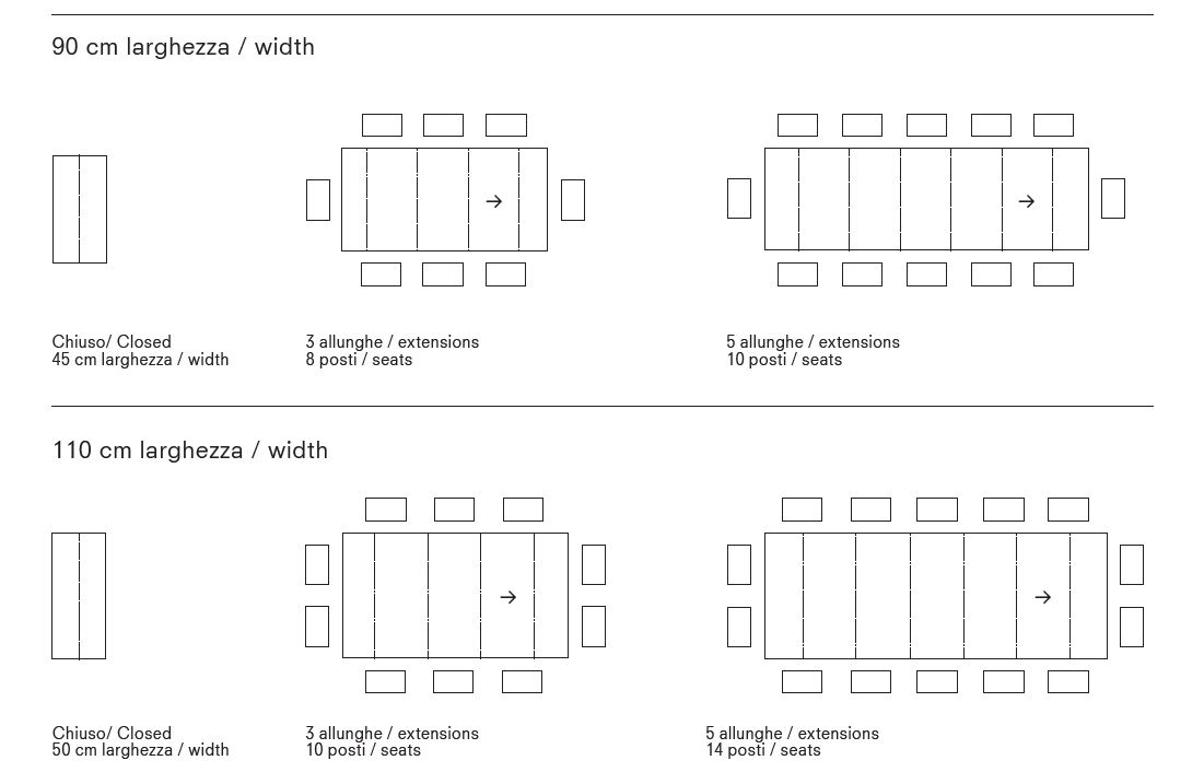 TAVOLO CONSOLLE ALLUGABILE CON STRUTTURA IN LAMINA D'ACCIAIO E GAMBE IN ACCIAIO TONDO PIENO DA 12MM VERNICIATE CON FINITURA SABLE'. IL TOP E LE 5 ALLUNGHE IN DOTAZIONE SONO REALIZZATI IN LAMINATO ECOLOGICO SPESSORE 18MM. DEL TOP ESISTONO 2 VERSIONI. LA VERSIONE STANDARD DA 90 E QUELLA IN FOLDING PIU' LARGA DA 110 E PIU' LUNGA. LA GUIDA ESTENSIBILE E' IN ALLUMINIO. LE GAMBE PIEGHEVOLI DI SOSTEGNO SONO IN ACCIAIO INOX