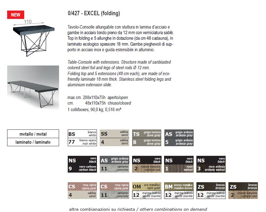 TAVOLO CONSOLLE PEZZANI EXCEL FOLDING MISURE E COLORI VARI