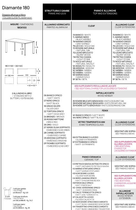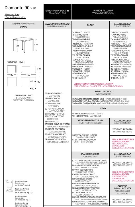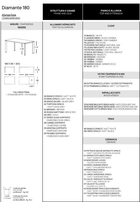 TAVOLO DIAMANTE POINTHOUSE CLEAF-FENIX MISURE E FINITURE VARIE
