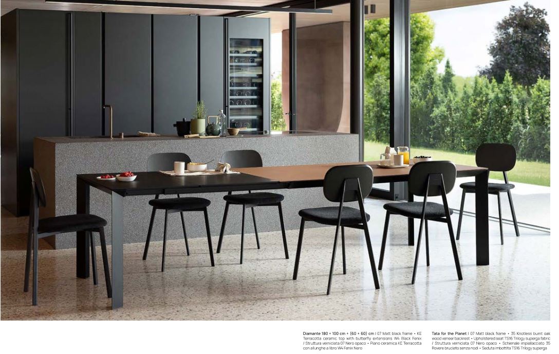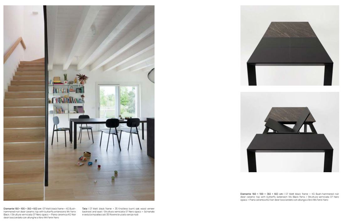 DIAMANTE E' UN TAVOLO DAL DESIGN ELEGANTE E DECISO, DISPONIBILE NELLA VERSIONE FISSA O ALLUNGABILE.