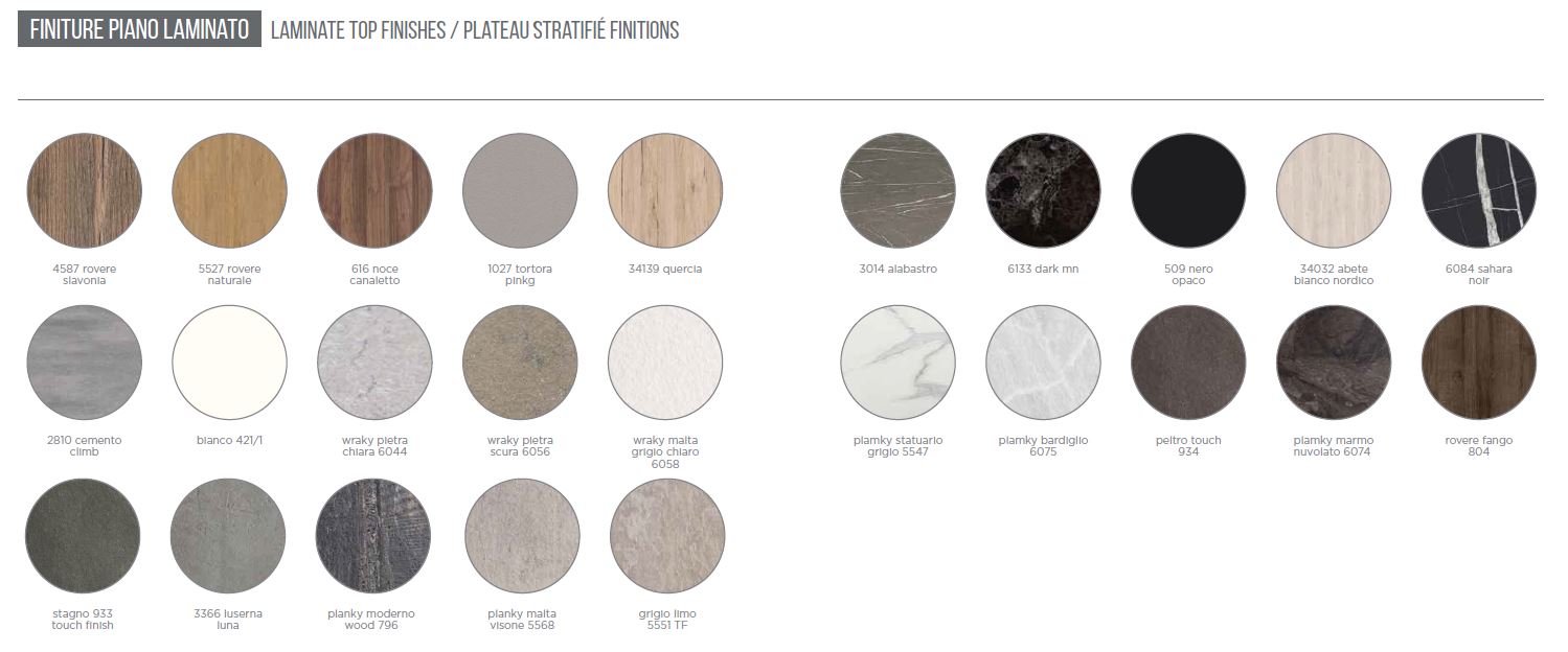 PIANO DISPONIBILE IN VARIE FINITURE: NOBILITATO, LAMINATO, FENIX, VETRO LACCATO, VETRO FUSO LACCATO, VETRO ACCOPPIATO