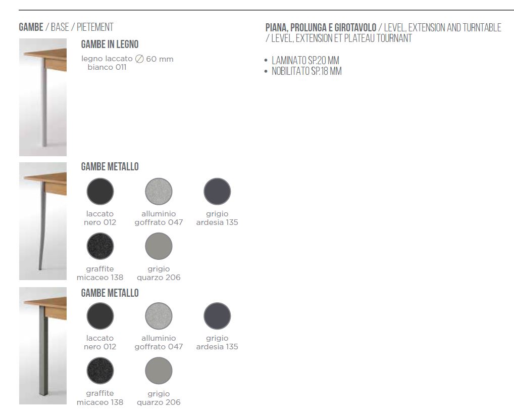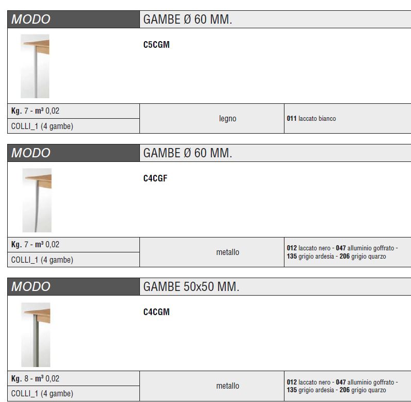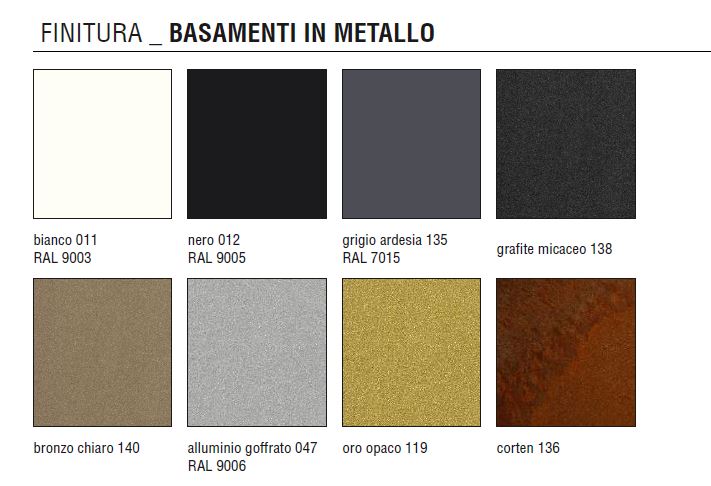 GAMBA METALLO 5X5 COLORI: 012 laccato nero - 047 alluminio goffrato - 135 grigio ardesia - 206 grigio quarzo.