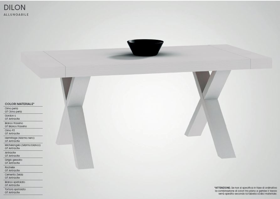 SE NON SI SPECIFICA IN FASE DI ORDINATIVO LA COMBINAZIONE DI COLORI TRA PIANO E GAMBE IL TAVOLO VERRA' SPDITO SECONDO LA TABELLA CODICI MATERIALE RIPORTATA NELL'IMMAGINE