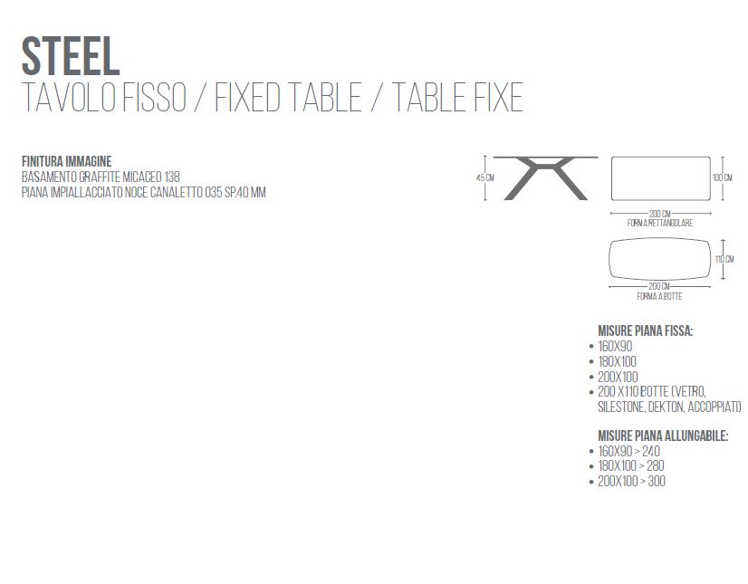 TAVOLO EUROSEDIA STEEL FISSO O ALLUNGABILE FINITURE VARIE