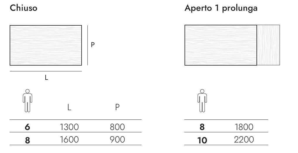 UNA PROLUNGA DA 50 CM ALLOGGIATA INTERNAMENTE PER IL TAVOLO 130