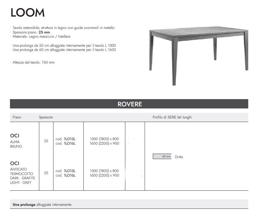 TAVOLO LOOM FGF ROVERE MISURE E FINITURE VARIE