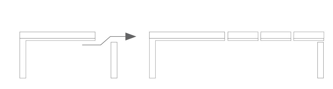 ALLUNGABILE TELESCOPICO, IL MECCANISMO DI ALLUNGA CONSENTE L'INSERIMENTO MANUALE E PROGRESSIVO DI ALLUNGHE AD INCASTRO. LE ALLUNGHE SONO ALLOGGIATE IN UN APPOSITO SCOMPARTO INTERNO