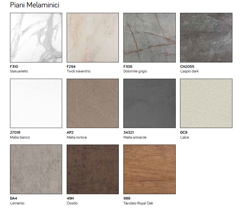 PIANO E ALLUNGA IN MELAMINICO FINITURE : STATUARIETTO, TIVOLI TRAVERTINO, DOLOMITE GRIGIO, CASPIO DARK