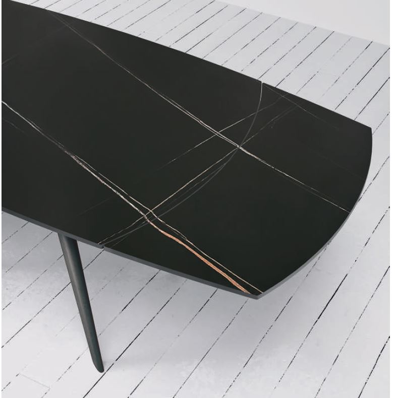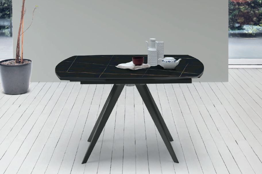 TAVOLO ALLUNGABILE CON STRUTTURA IN METALLO VENRICIATO E PIANO GIREVOLE IN GRES PORCELLANATO EFFETTO MARMO SPESSORE 12MM