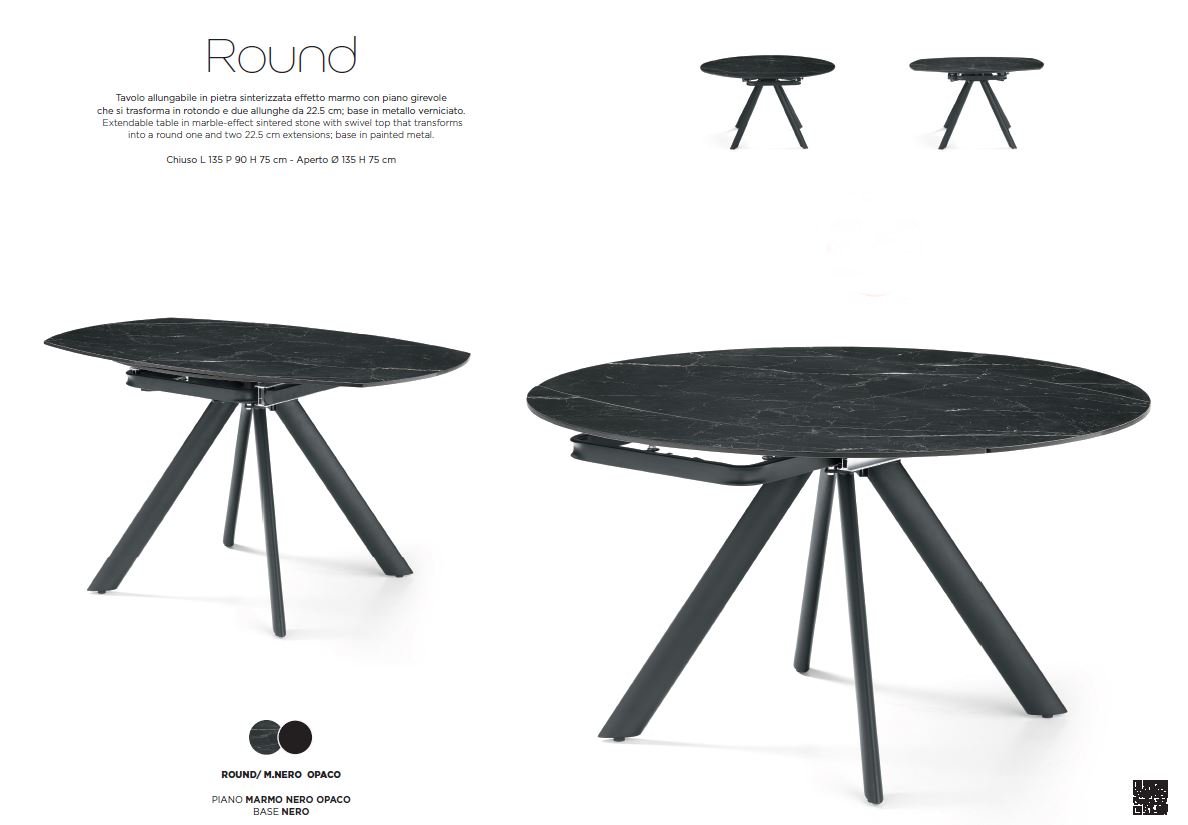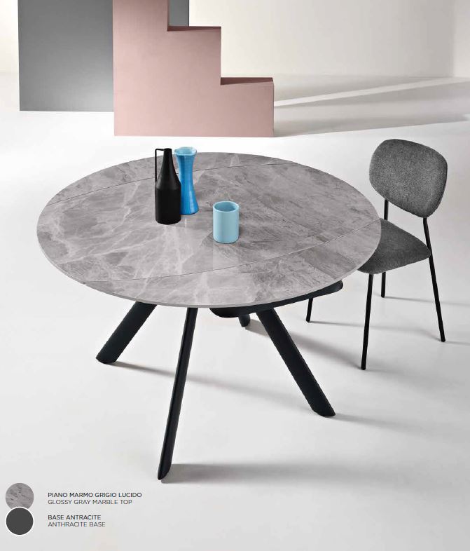TAVOLO GIREVOLE 90X135 ALLUNGABILE 135 TONDO IKONE ROUND MARMO GRIGIO LUCIDO