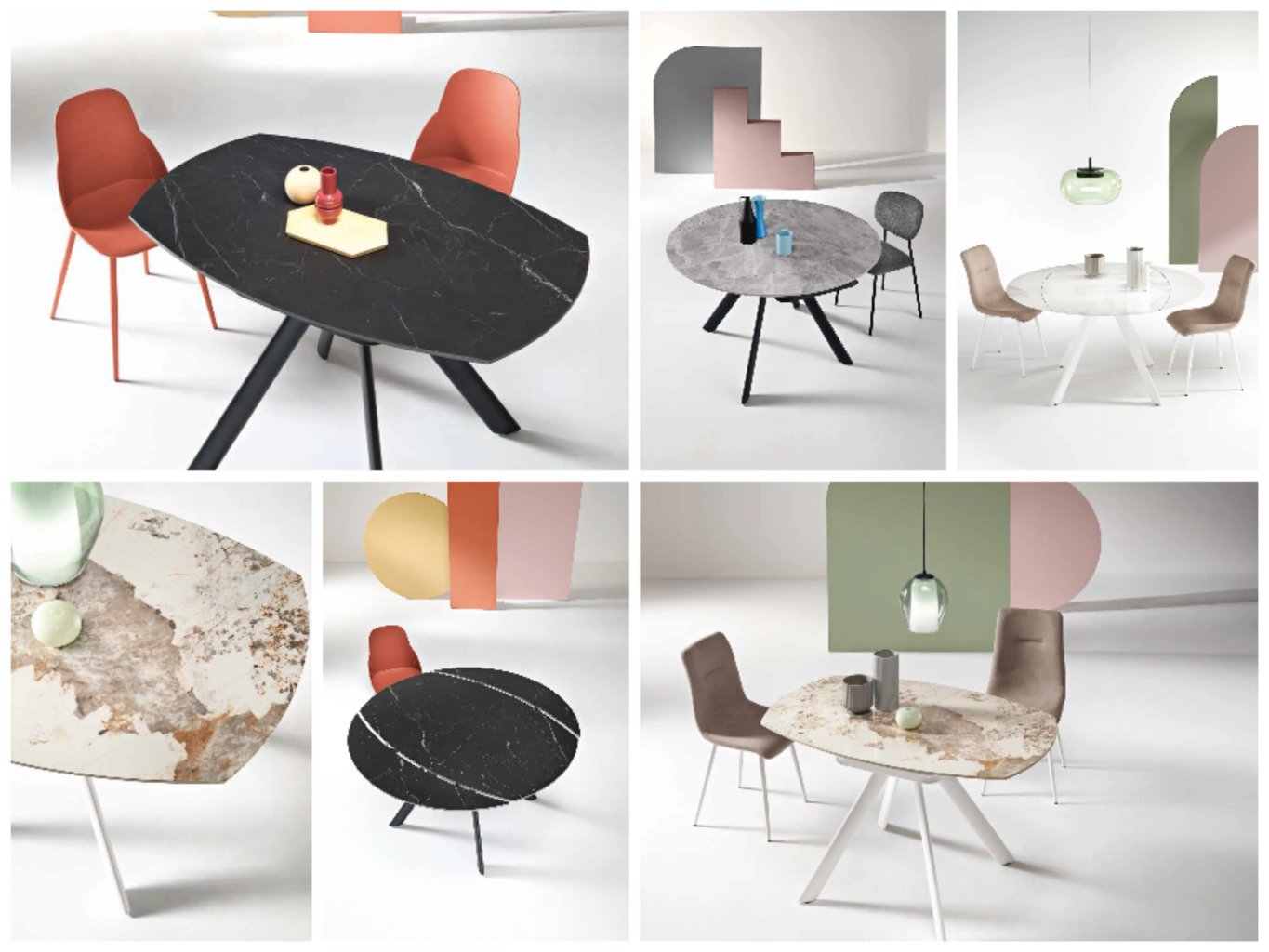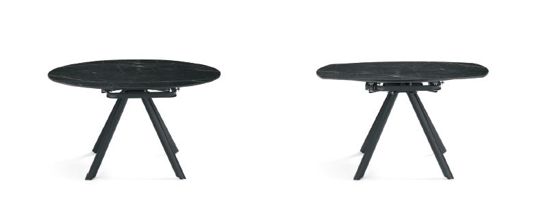 Tavolo allungabile in pietra sinterizzata effetto marmo con piano girevole