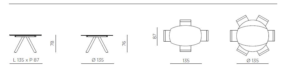 Chiuso L 135 P 90 H 75 cm - Aperto Ø 135 H 75 cm
