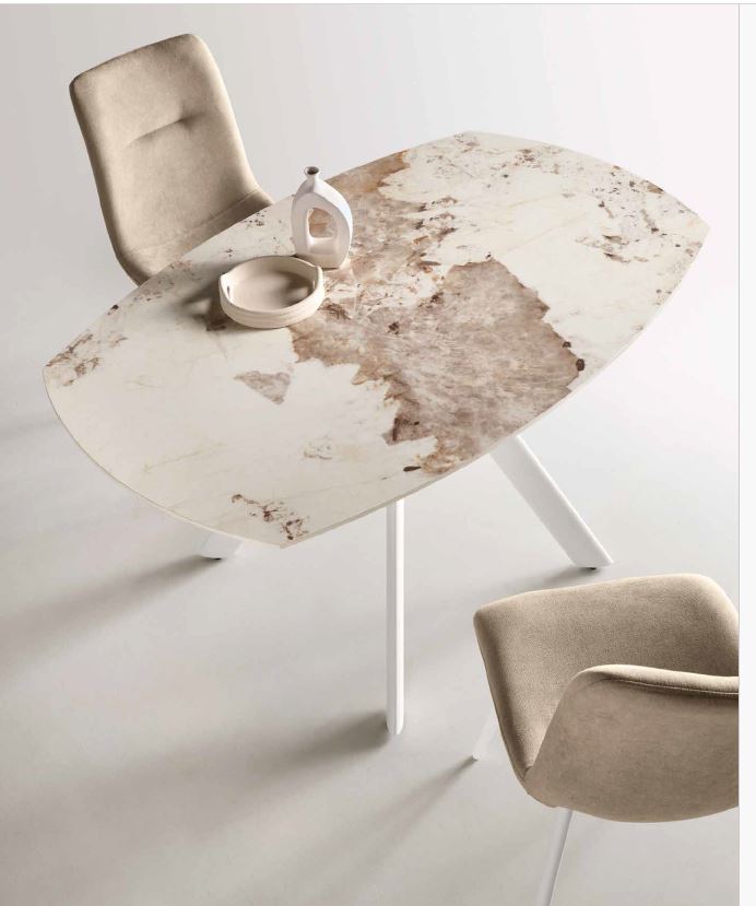 Painted metal frame and marble-effec sintered stone top.