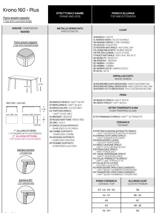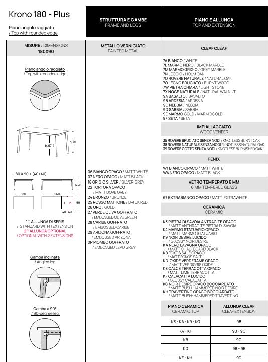 80X120 ALLUNGABILE 160, 80X140 ALLUNGABILE 180-220, 90X140 ALLUNGABILE 180-220 (SECONDA ALLUNGA OPTIONAL) 90X160 ALLUNGABILE 200-240, 90X180 ALLUNGABILE 220-260, 100X200 ALLUNGABILE 240-280.