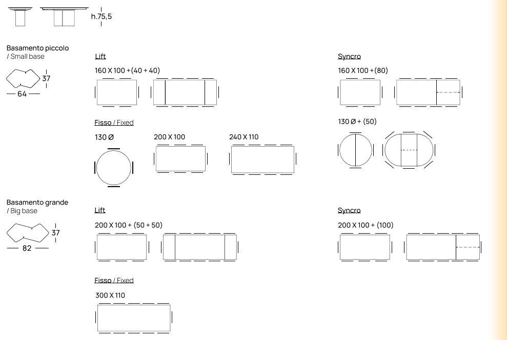 TAVOLO METRA POINTHOUSE 130 FISSO O ALLUNGABILE 180 FINITURE VARIE