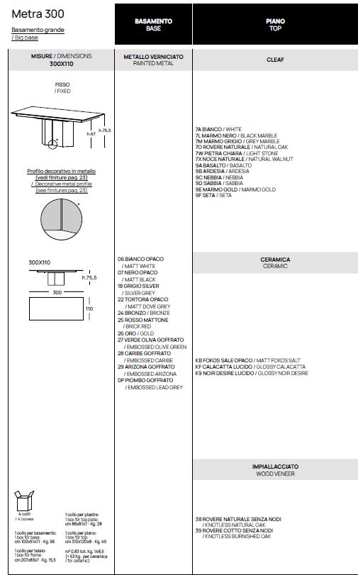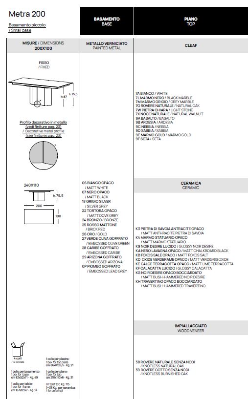 TAVOLO METRA POINTHOUSE FINITURE E MISURE VARIE