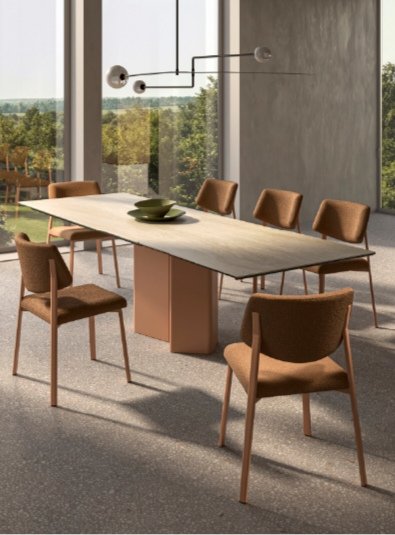 Metra è un tavolo dal carattere deciso e contemporaneo, definito da una base in lamiera verniciata a polveri e disponibile in diverse finiture. Proposto nelle versioni fissa e allungabile, Metra può essere abbinato a piani in Cleaf, ceramica o impiallacciato rovere, offrendo soluzioni versatili e di grande impatto visivo per l’area living.