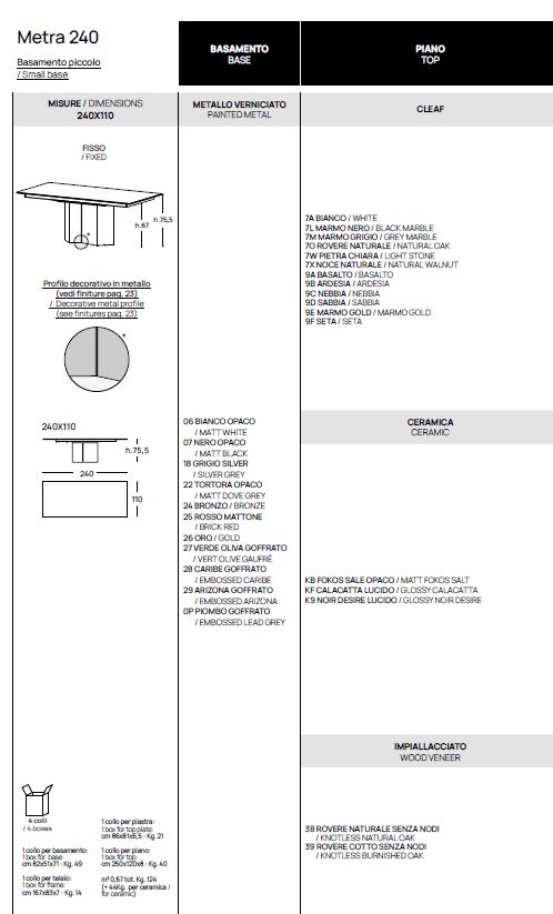 TAVOLO METRA POINTHOUSE FINITURE E MISURE VARIE