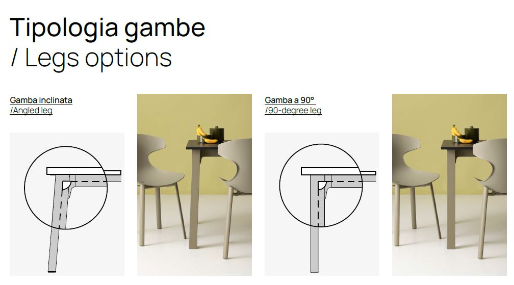 GAMBA INCLINATA DI SERIE OPPURE SU RICHIESTA A 90°, STESSO PREZZO